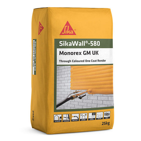 A through coloured, one coat, semi-lightweight, weather resistant and breathable decorative render.