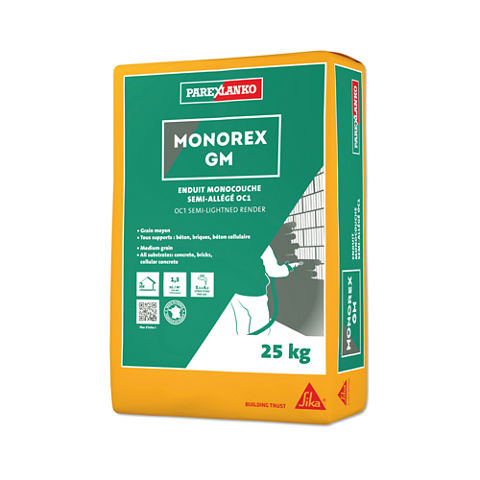 Parex® Monorex GM is a decorative render designed for external application onto vertical masonry and concrete walls. It provides a durable and aesthetically pleasing finish for building facades.