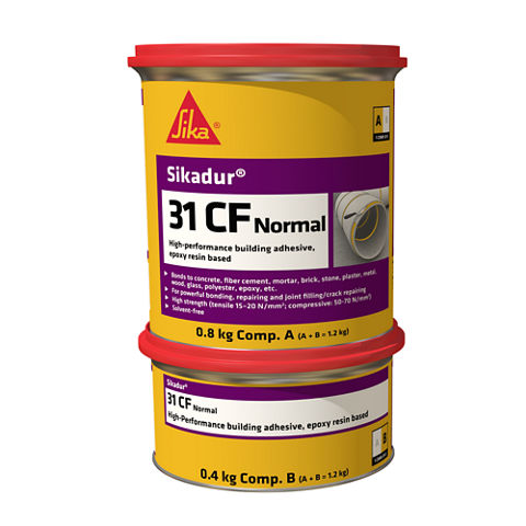 Sikadur®-31 CF Normal is a moisture tolerant, thixotropic, structural 2-component adhesive and repair mortar, based on a combination of epoxy resins and special fillers, designed for use at temperatures between +10 °C and +30 °C.