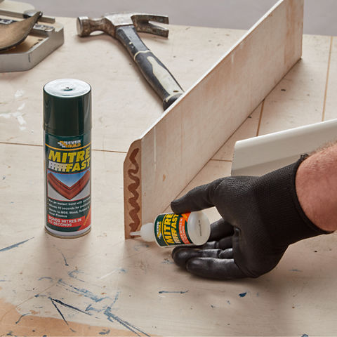 Mitre Fast Bonding Kit is a two-part instant adhesive system comprising a cyanoacrylate adhesive and aerosol activator. Mitre Fast is mainly used in the furniture, timber, kitchen and plastics industries where its instant bonding properties dramatically reduce assembly times for mitre joints when compared to conventional wood adhesives. Also suitable for bonding of MDF, rubber, PVCu, metals etc.