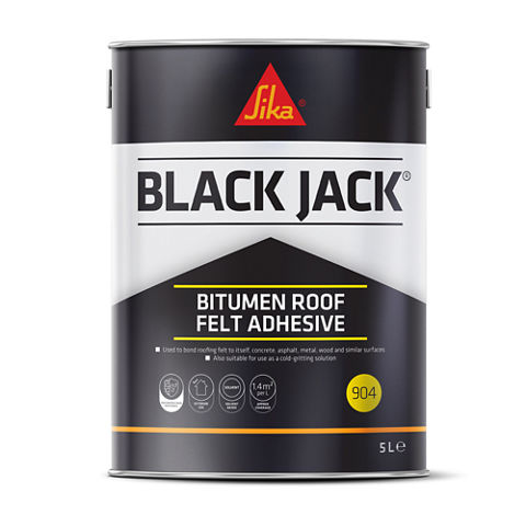 Sika® Black Jack®-904 Bitumen Roof Felt Adhesive is a cold applied, oxidised bitumen based adhesive used to bond roofing felt to most surfaces. Specifically designed for bonding all types of roofing felt to metal, concrete, wood, sealing felt laps and as a cold gritting solution for bonding mineral chippings.