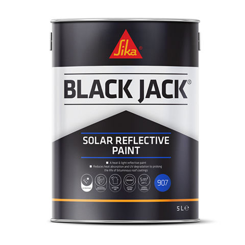 Sika® Black Jack®-907 Solar Reflective Paint is a thin bituminous-based aluminium protective paint of brushable consistency which dries to a silvery finish. The product is specifically designed for application over primed metal walls and roofs to reduce heat absorption.