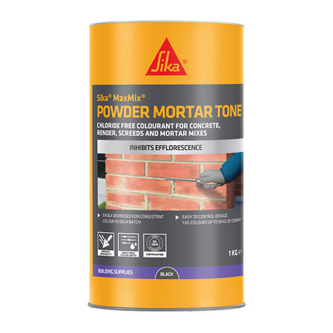 Sika® MaxMix® Powder Mortar Tone is a range of powdered oxide pigments which can be accurately measured to colour concrete, render, screeds, mortar etc. The pigments disperse easily into the mix to give a uniform shade for each mix batch, dose can be adjusted to provide a wider variety of colour depths.