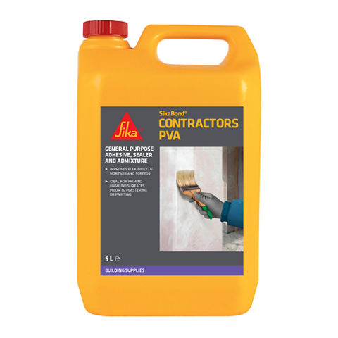 SikaBond® Contractors PVA is a multi-purpose, water-based adhesive, primer, sealer, and mortar admixture. It adheres to most common building materials, excluding PVC and rubber, and is ideal for priming unsound surfaces before plastering or painting, enhancing cement mixtures and dust sealing on flaking paintwork and walls. SikaBond® Contractors PVA is an adhesive for use on wood, cork, textiles, plaster, concrete etc.