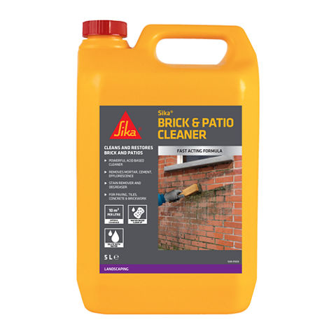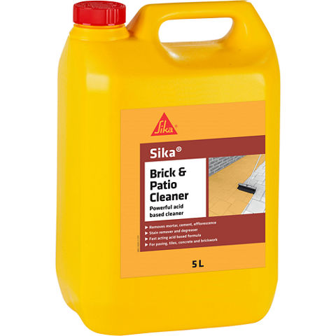 Sika® Brick & Patio Cleaner is a fast acting, acid based cleaning solution for brickwork, concrete and paving. Easy to use, powerful formula dissolves mortar and cement stains, ingrained dirt, efflorescence and most paints on mineral surfaces such as brick, stone and paving slabs.