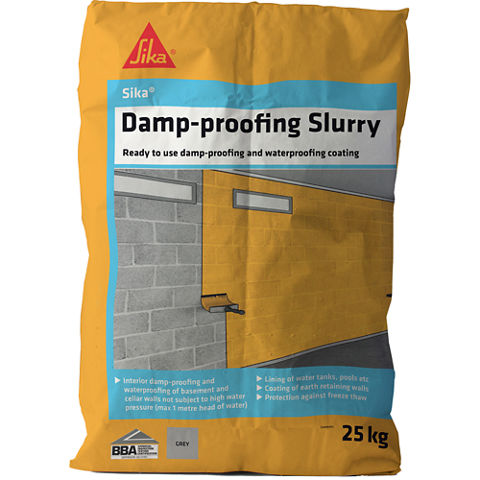 Sika® Damp Proofing Slurry is a one part polymer modified cement based waterproof coating comprising of special cement based components and admixtures. When mixed with water a slurry or mortar material is produced for direct application to a variety of construction substrates.