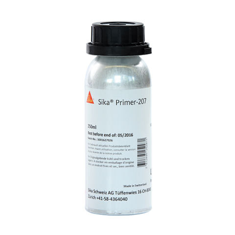 Sika® Primer-207 is a solvent-based black primer, which reacts with moisture and forms a thin layer. This layer acts as a link between substrates and adhesives.